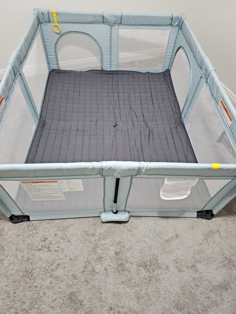 Foldable Play Pen Fence NewOB. Comes with Carrying Bag, Play Mat Gray & 2 Toy Hooks Measurement 72x56 Light Green I am located near Bishop Gorman High School at the intersection of Russell and Hualapai. For those on the East side, my storage unit is conveniently located off the 215 Freeway and Russell