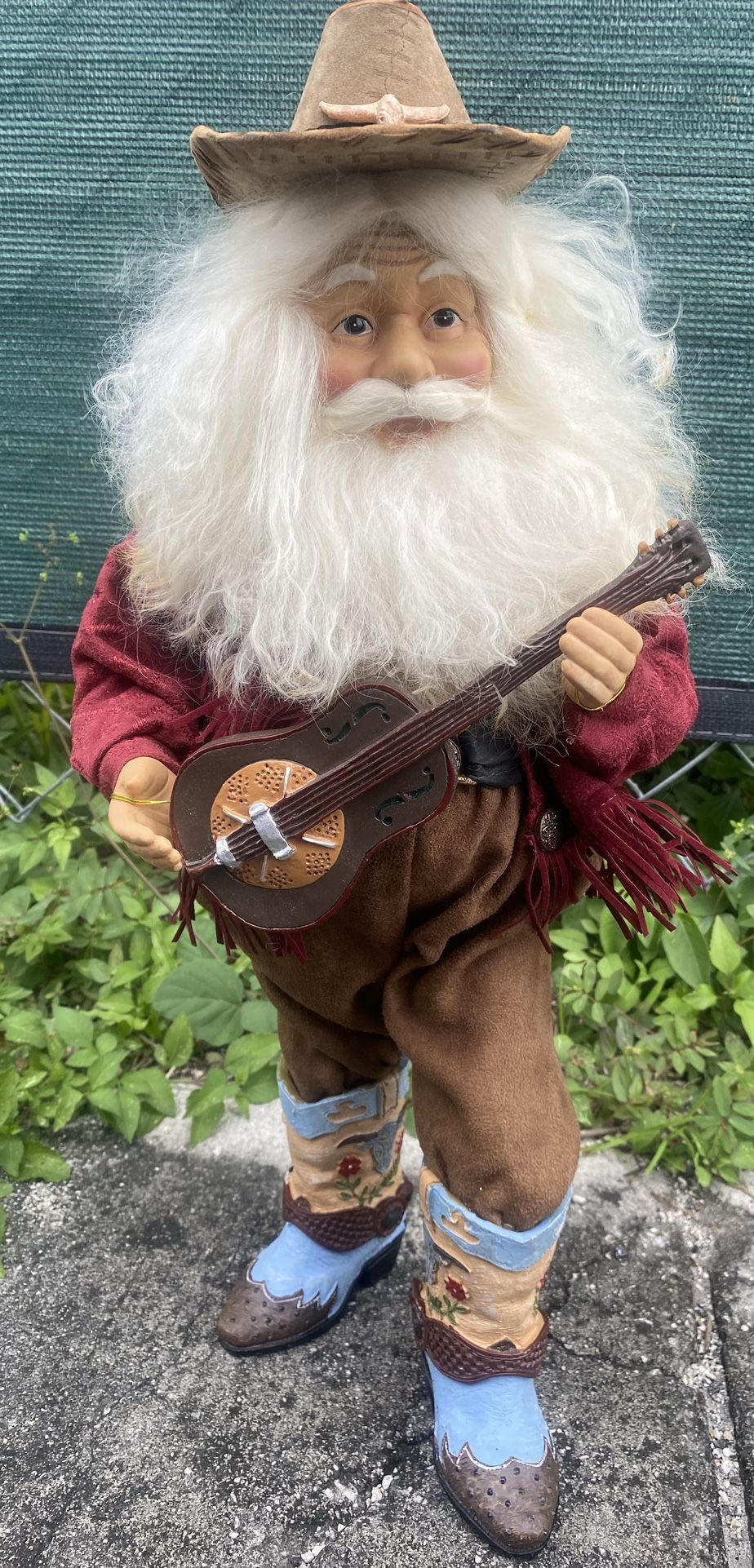 Still available if posted 20” Southwestern Cowboy Standing Santa Claus w/Guitar Country Western Christmas