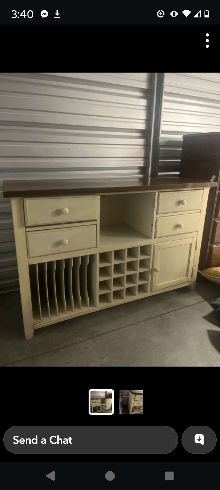 Used, massive impact piece. Color beige, sturdy and heavy. Wayfair brand.