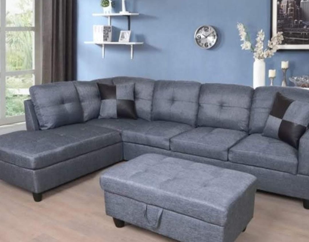 New Sectional with Storage Ottoman at only $620 ( NEW IN BOX. ) " FREE LOCAL DELIVERY " Overall dimensions 103x74x35"H Sofa. 71 1/2 x 32 x 35" H Chaise 74 1/2 x 32 x 35" H Ottoman 37 x 24 1/2 x 16 1/2" H