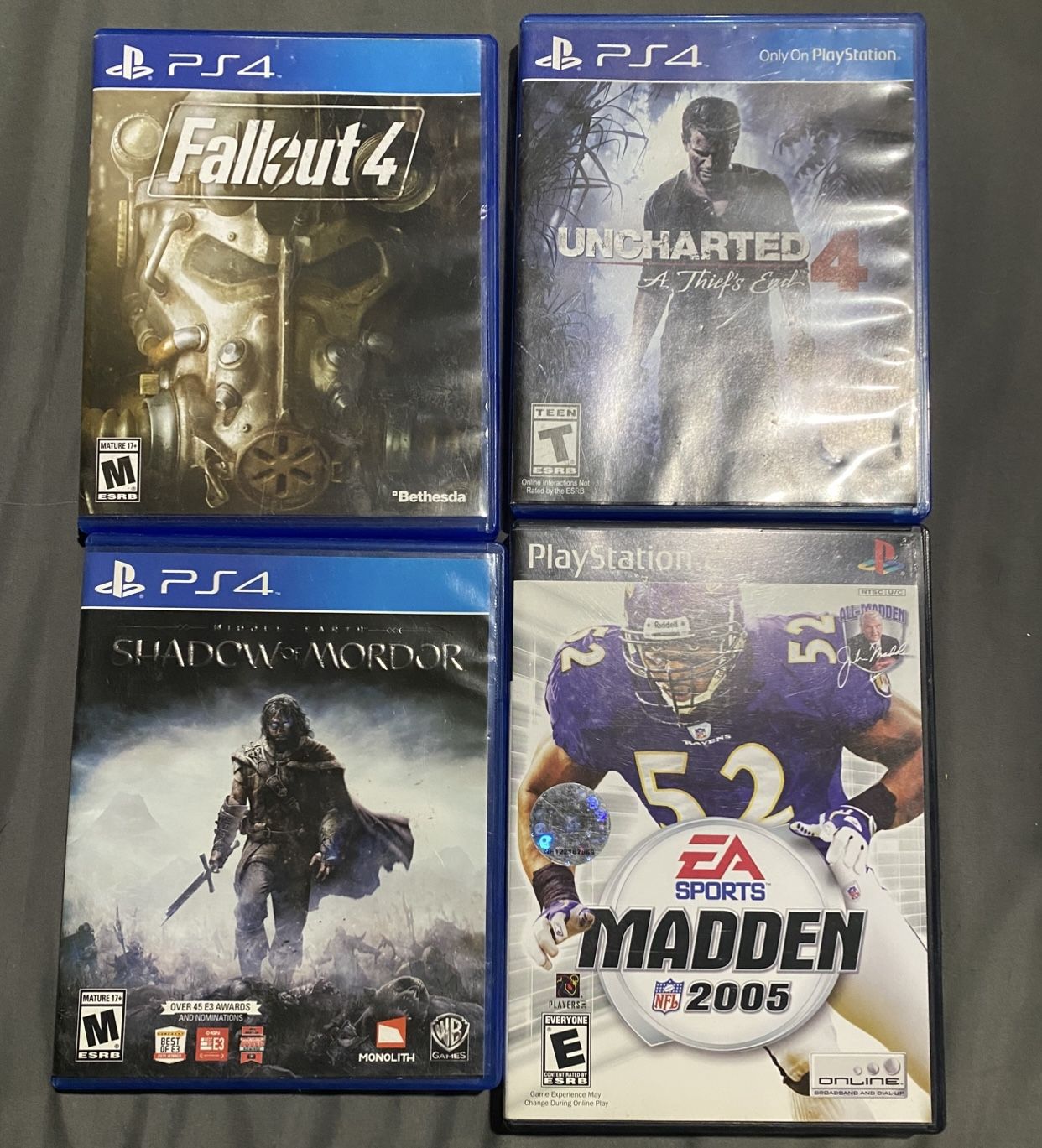 Fallout 4 for PS 4 …. Uncharted 4 for PS 4 Shadow of Mordor for PS4 EA MADDEN 2005 for PS2 Pick up in North Hollywood California ALL FOR 20 FIRM