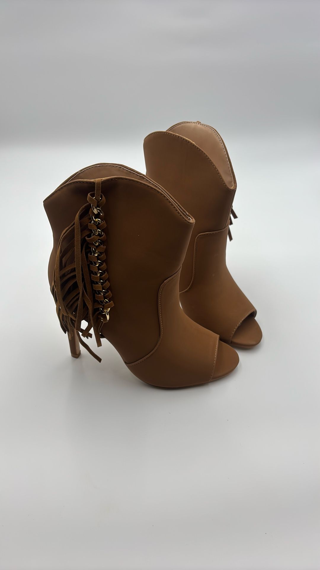 Women’s Brown Gold Chained Tassel Western Style Booties- Size 5.5