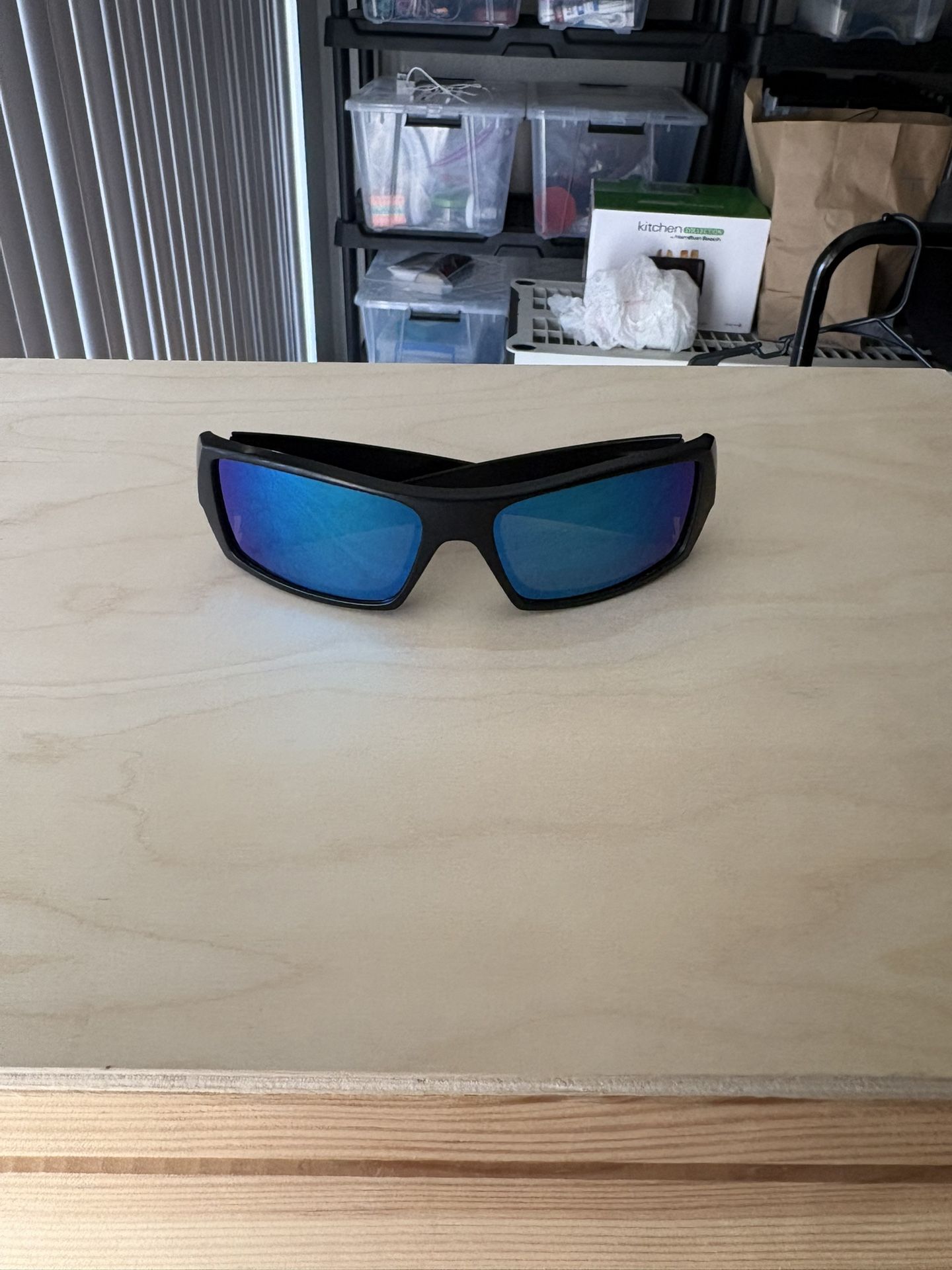 Oakley Gascan. Prizm Sapphire lenses. Frame is not bad, lenses are decent. PAID $85 just for the lenses, and $21 for case. I have the receipt. Includes extra pair of polarized orange lenses (not Oakley), Oakley microbag, and Oakley case.