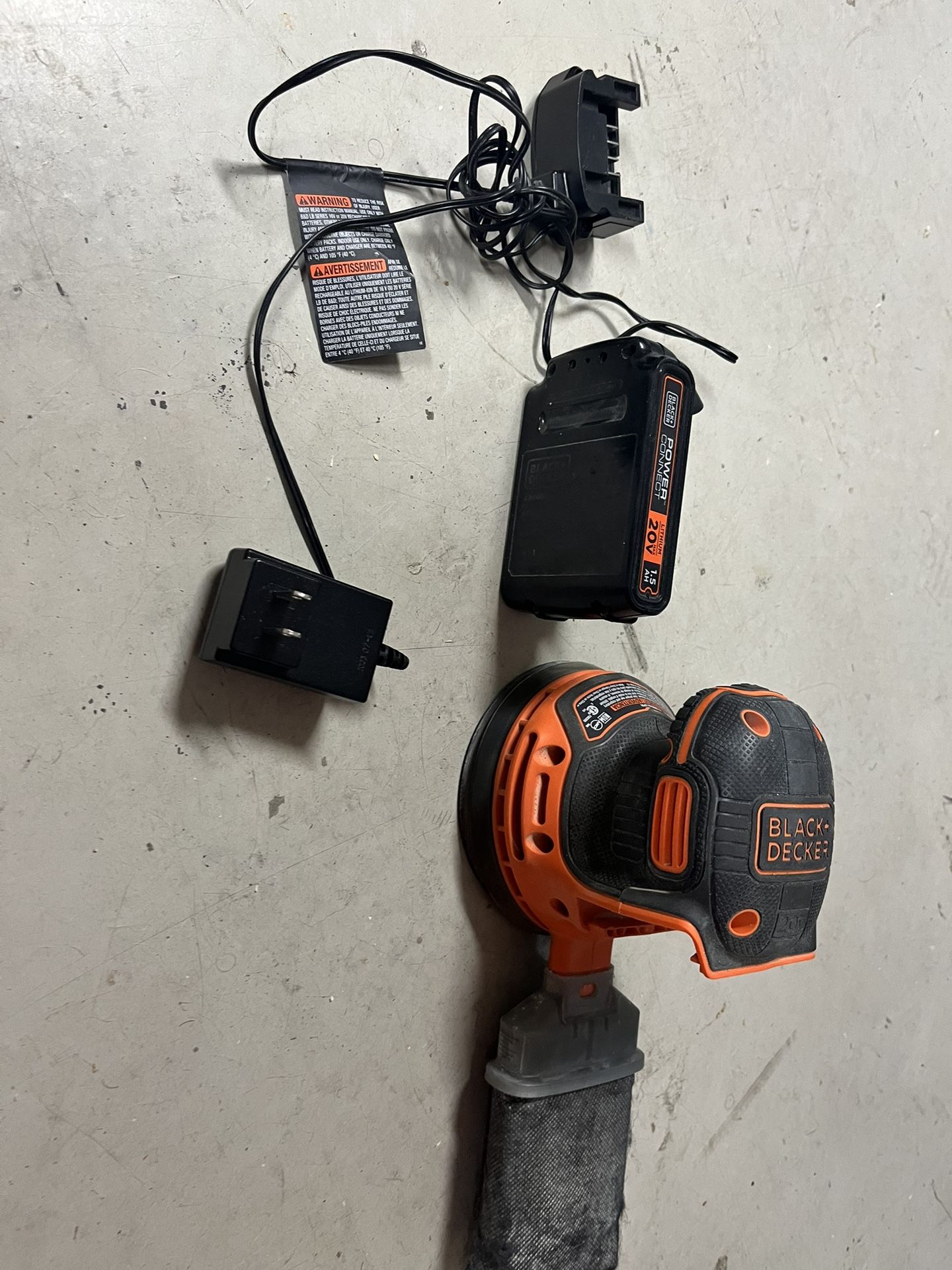 20v Black andd Decker round sander with charger and battery. Great condition