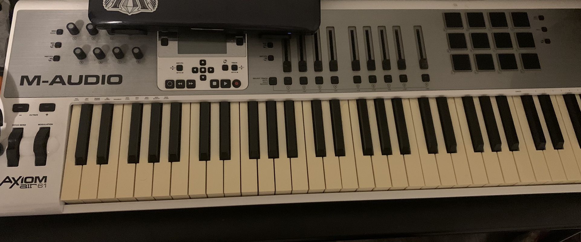 M audio axiom air 61 key controller. Need a computer to use it. Powers on but no longer works for my computer. Letting it go cheap. They no longer make this keyboard. Price negotiable will take all offers. Cash only no delivery.