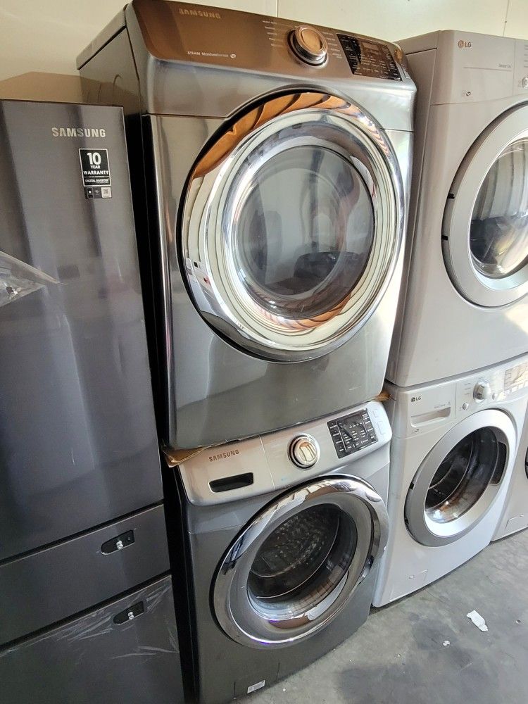 Samsung Front Load Washer And Stackable Gas Dryer Set In Platnum Stainless Steel Look