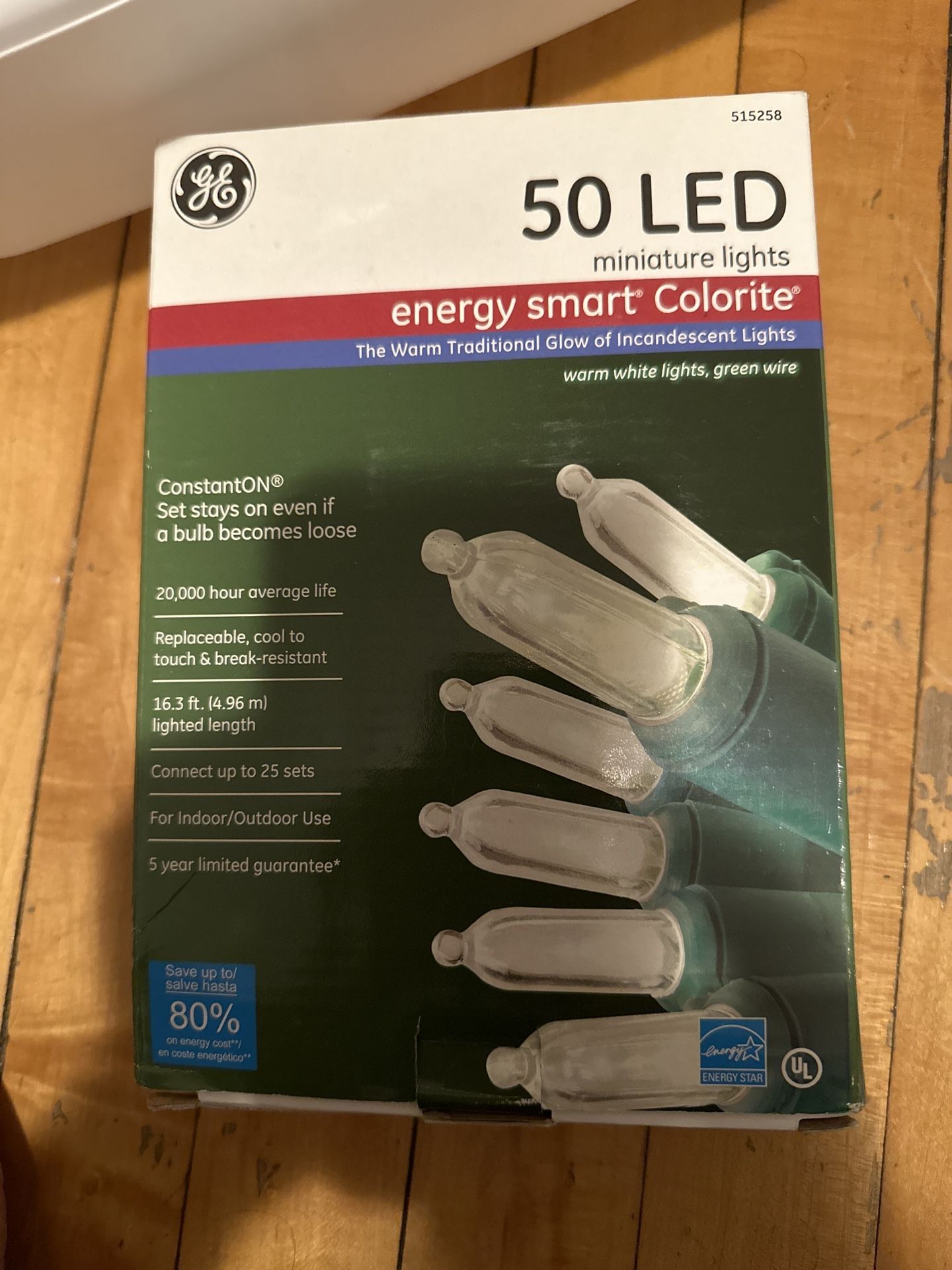 Energy Smart Colorite, warm white lights, green wire, 16.3 ft lighted length, for indoor/outdoor use.