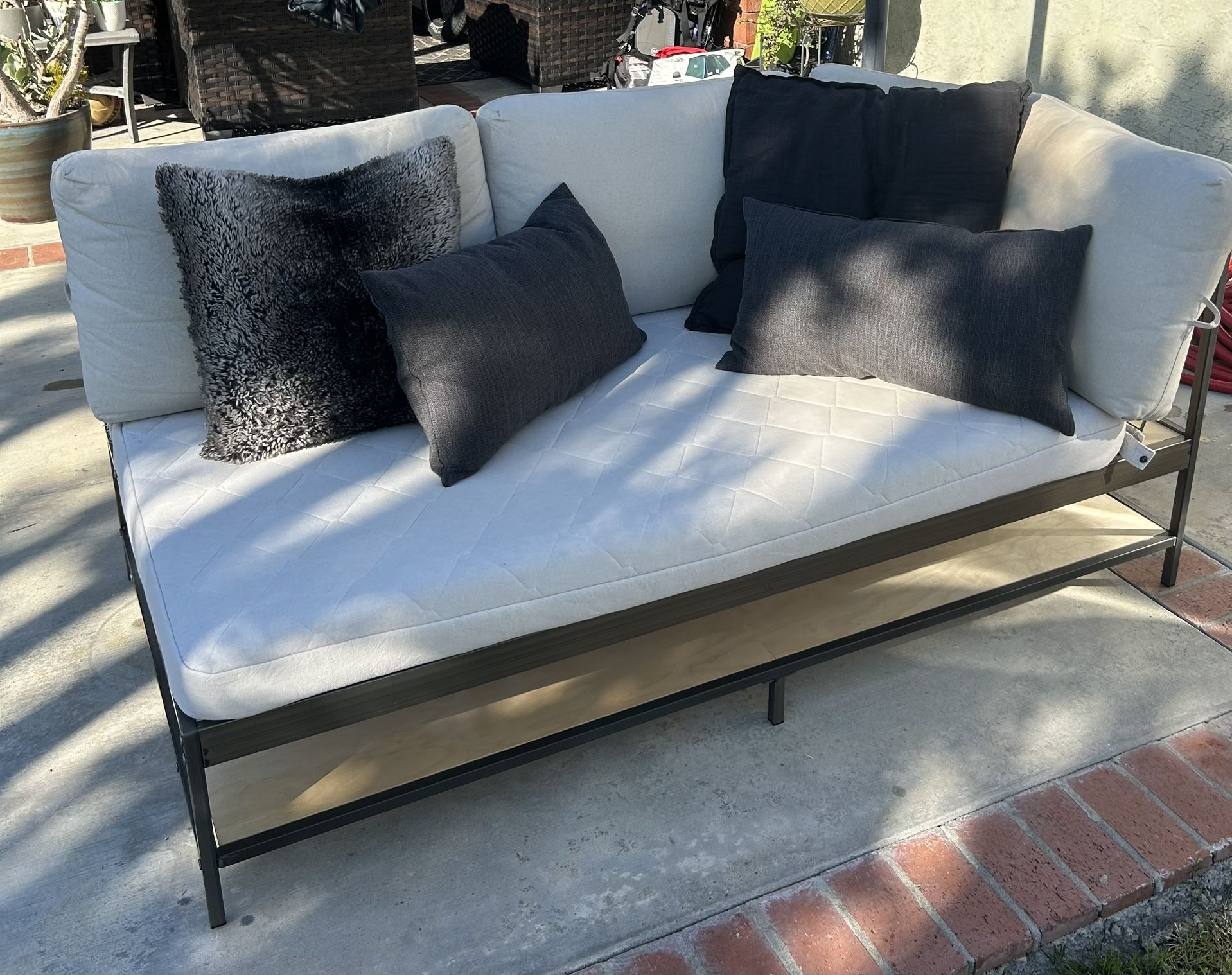 This is my Ikea Ekebol couch. It has been sitting underneath my loft for a few years and has been treated great. The cushion cases are all washable and the pillows are free for you to take if you’re interested in having them.