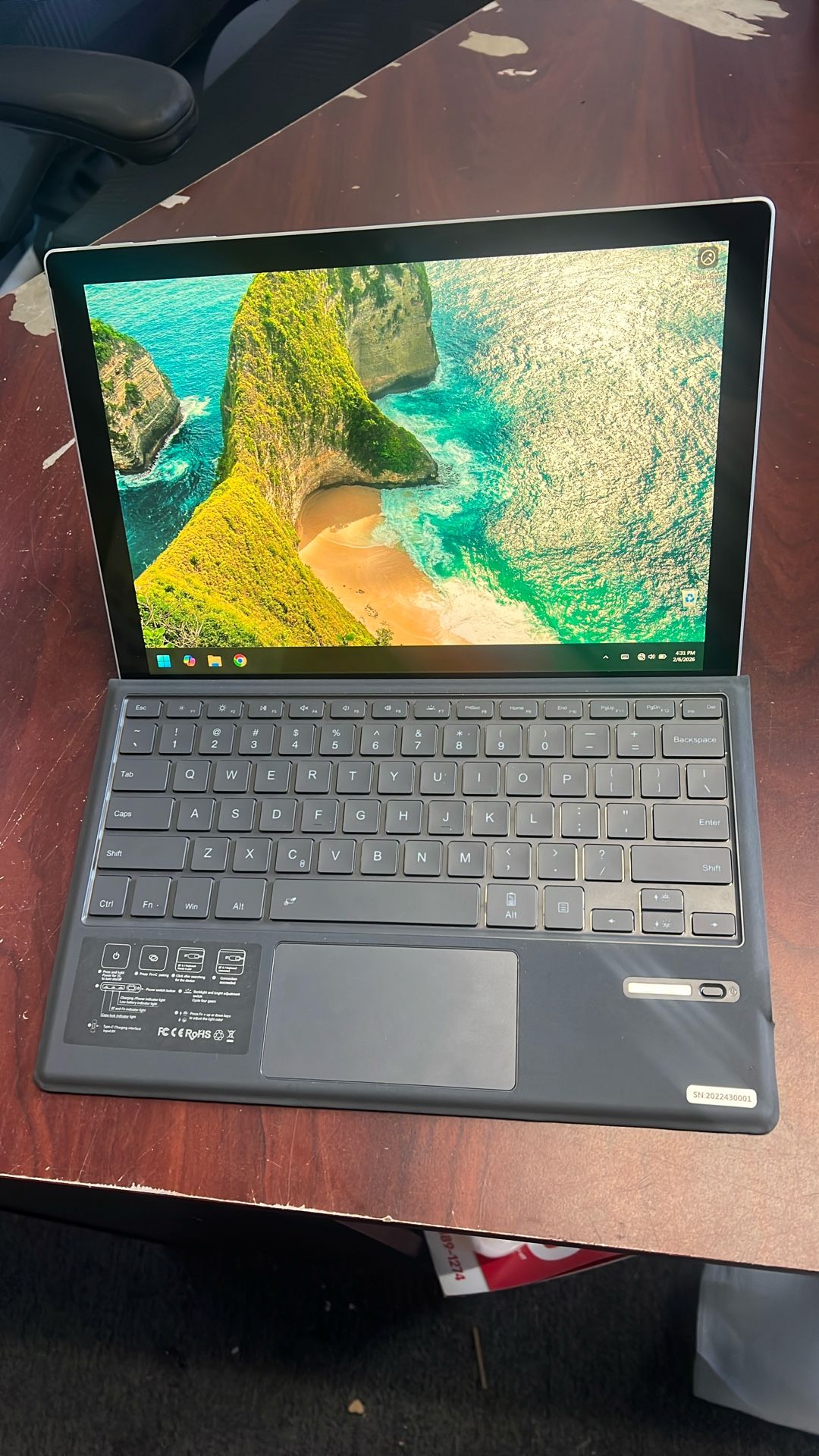 Processor: intel 11th gen i5 Hard drive storage: 256 gigs Graphics card: 128 mb Ram: 8 gigs Operating system: Windows 11 Pro 1 USB-A port 1 USB-C port 1 micro sd slot 1 headphone jack No sim card slot Battery health is normal Included: keyboard and tablet charger
