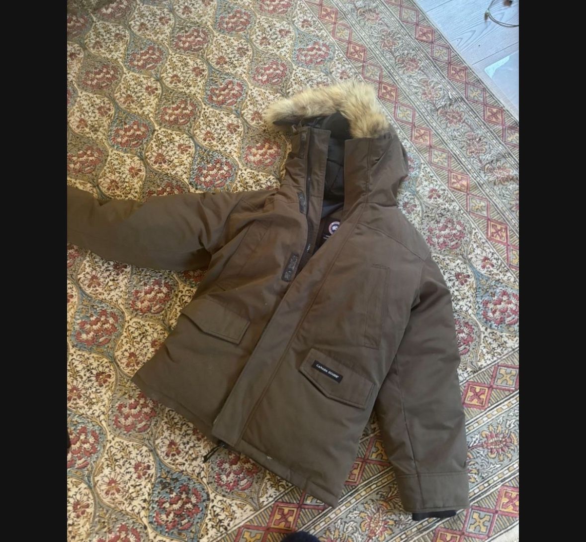 LOW PRICE MOVING- VINTAGE $2400 + TAX RETAIL CANADA GOOSE COAT 100% authentic Used until 1 season Good used condition Real fur hood, they don’t make them like this anymore Fits a men’s xs or a women’s small Asking $280 Will trade for cedar plank wood, or a sauna you must deliver trade value $800 First come first serve Moving