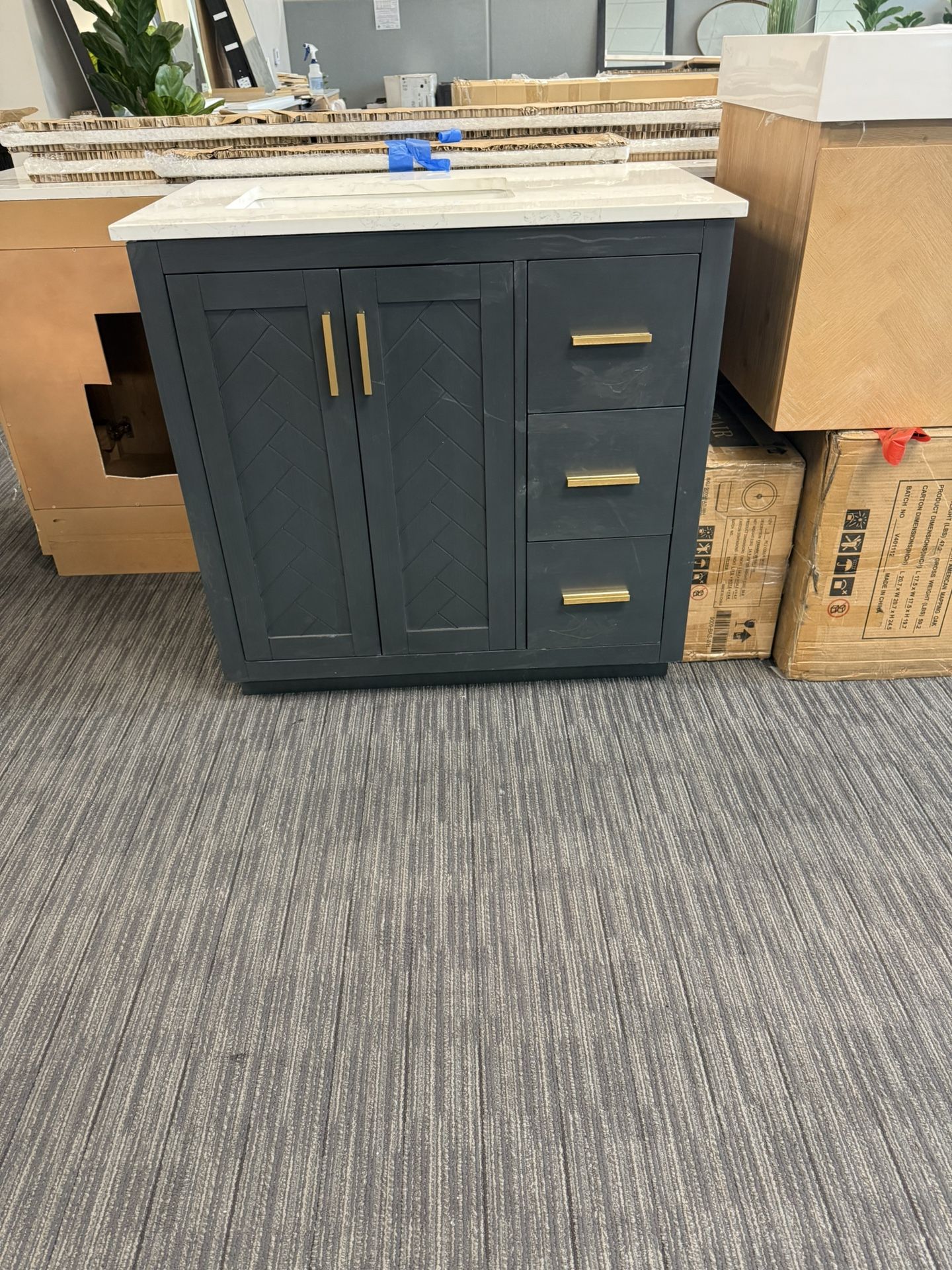 36” Bathroom vanity in charcoal blue ,with solid wood frame ,with soft closing doors and soft closing drawers