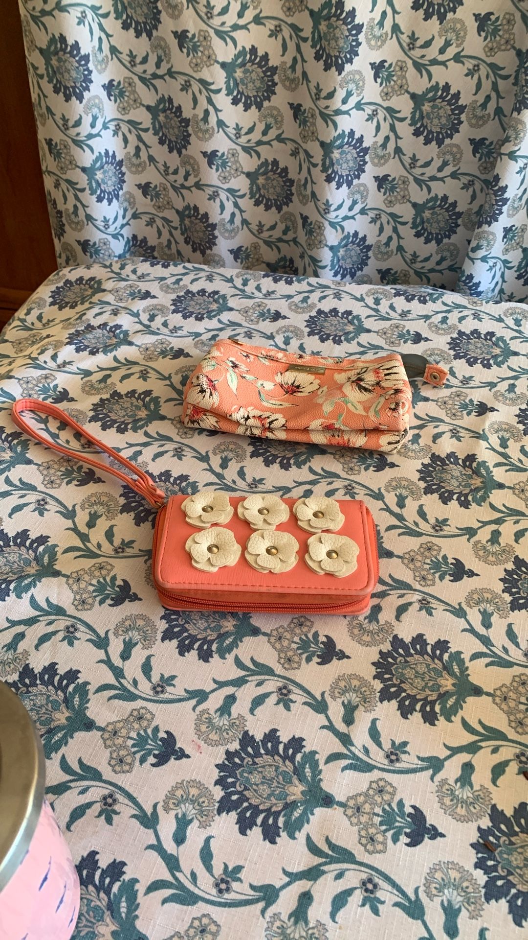 Pink wallet and pink flowers make up case