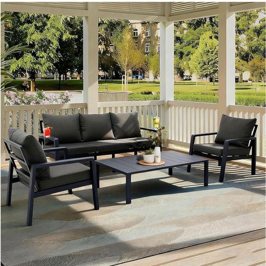 Outdoor 4pc Patio Set With Cushions Included, 2pc Cup Holders