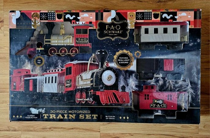 30 pieces motorized Ages 8 + Classic train action Real light and sound18 ft/5.4 M of track f.a.o Schwartz since 1862 I accept Cash, Venmo, and Zelle
