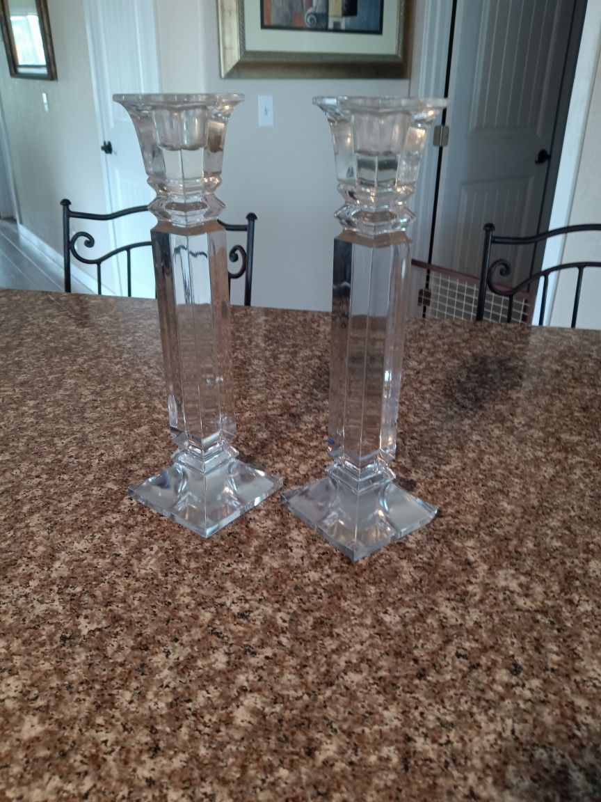 2 Tall Glass Candle Holders