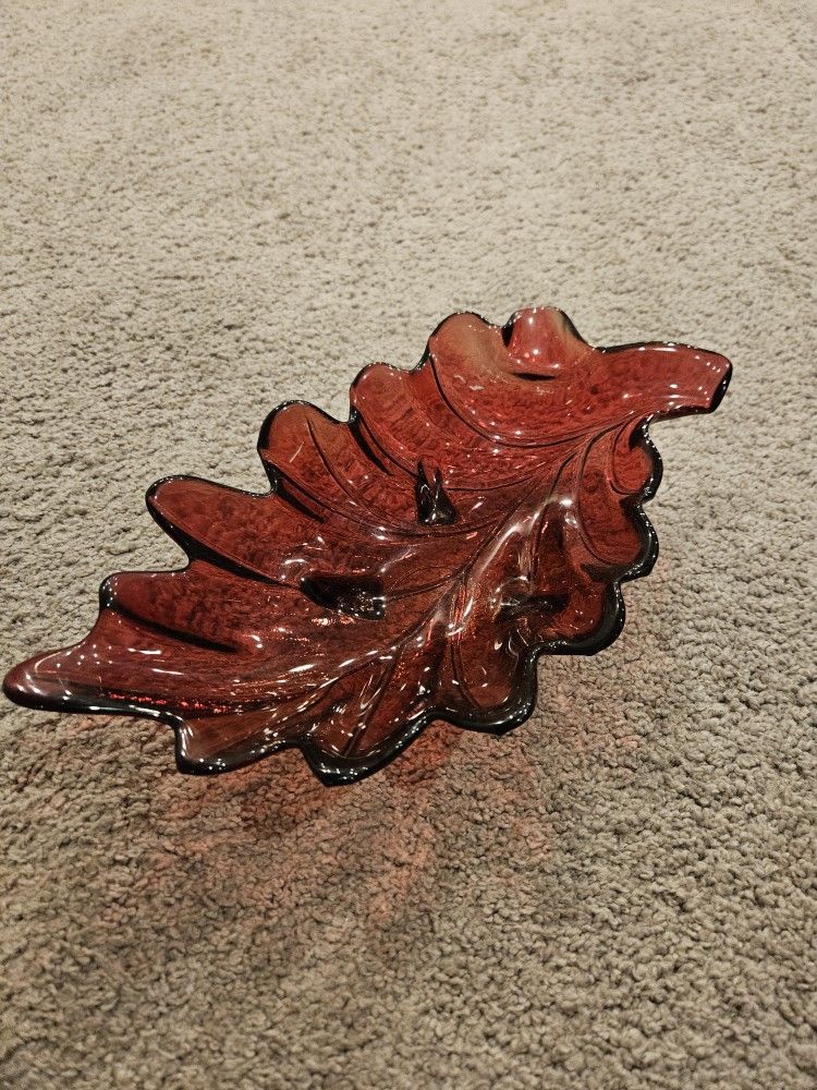 Vidrios Beautiful Fall/Autumn Leaf Serving Bowl-Work of Art - Thanksgiving - like new .looks small in pic but in person its big