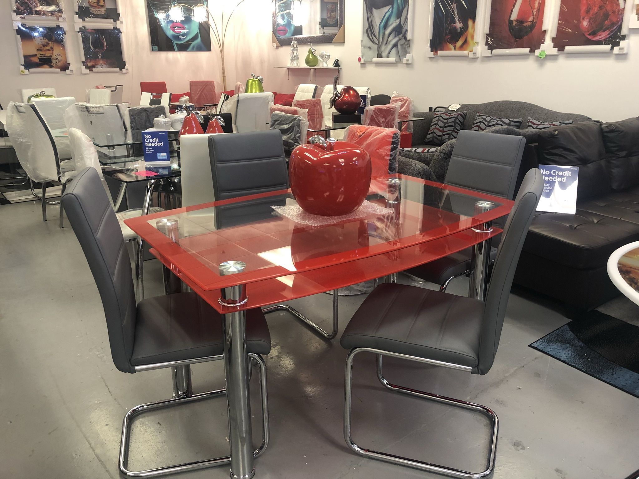 New dining table set we finance Hablamos español Nosotros financiamos solo $39 pago inicial visit us at 5513 8th atreet w suite 10 lehigh acres,fl 33971