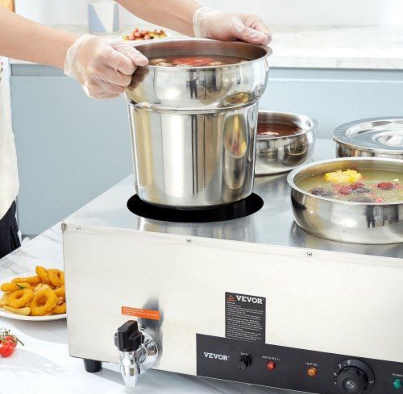 VEVOR Electric Soup Warmer, Four 7.4QT Stainless Steel Round Pot 86~185°F Adjustable Temp, 1500W Commercial Bain Marie with Anti-dry Burn and Reset Button, Soup Station for Restaurant, Buffet, Silver Paid $200 plus shipping I’ll take $180