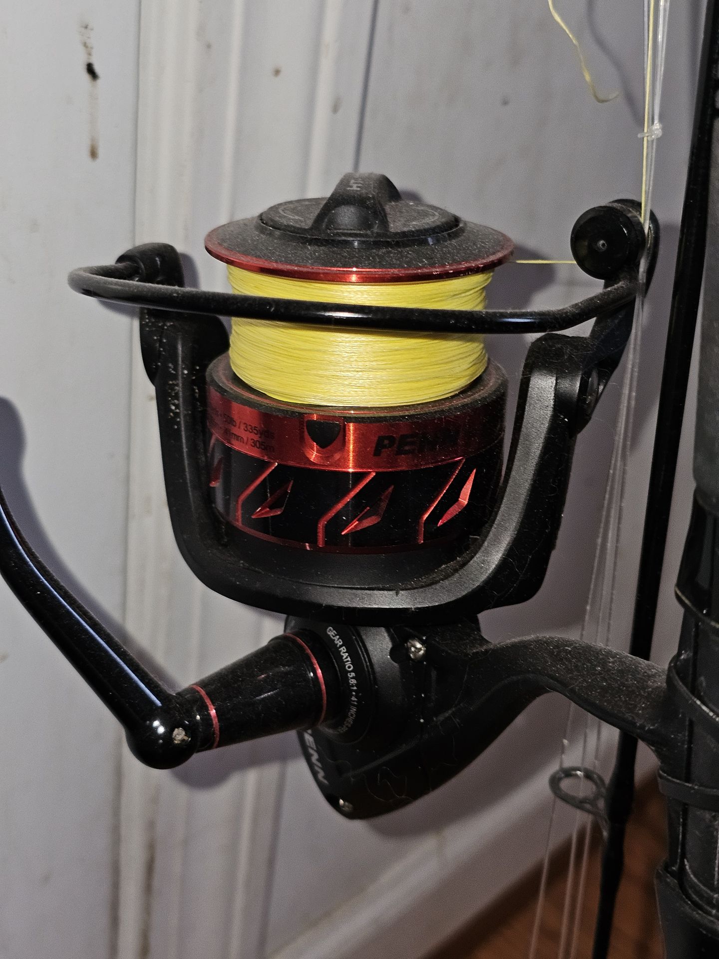 Like new bairly used has 50lb test salt water braided line that cost 80 bucks just for the line full spool always washed it thoroughly after each use to make sure all salt was cleaned off. Im checking the new box because it still has the plastic on the handle with barcode