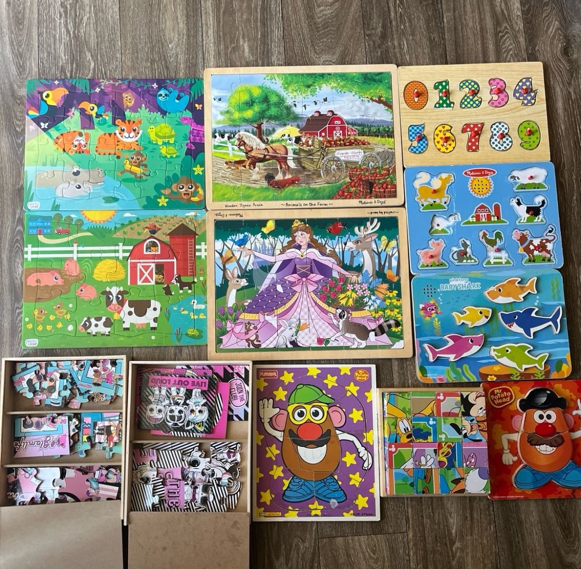 Lot of puzzles Disney, melissa and doug, LOL, etc Price is for all