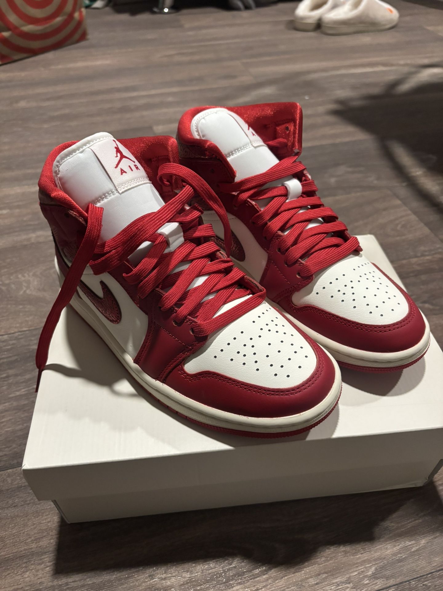 Woman’s Air Jordan 1 mid SE size 7.5 Sail/ Varsity red Brand new in box