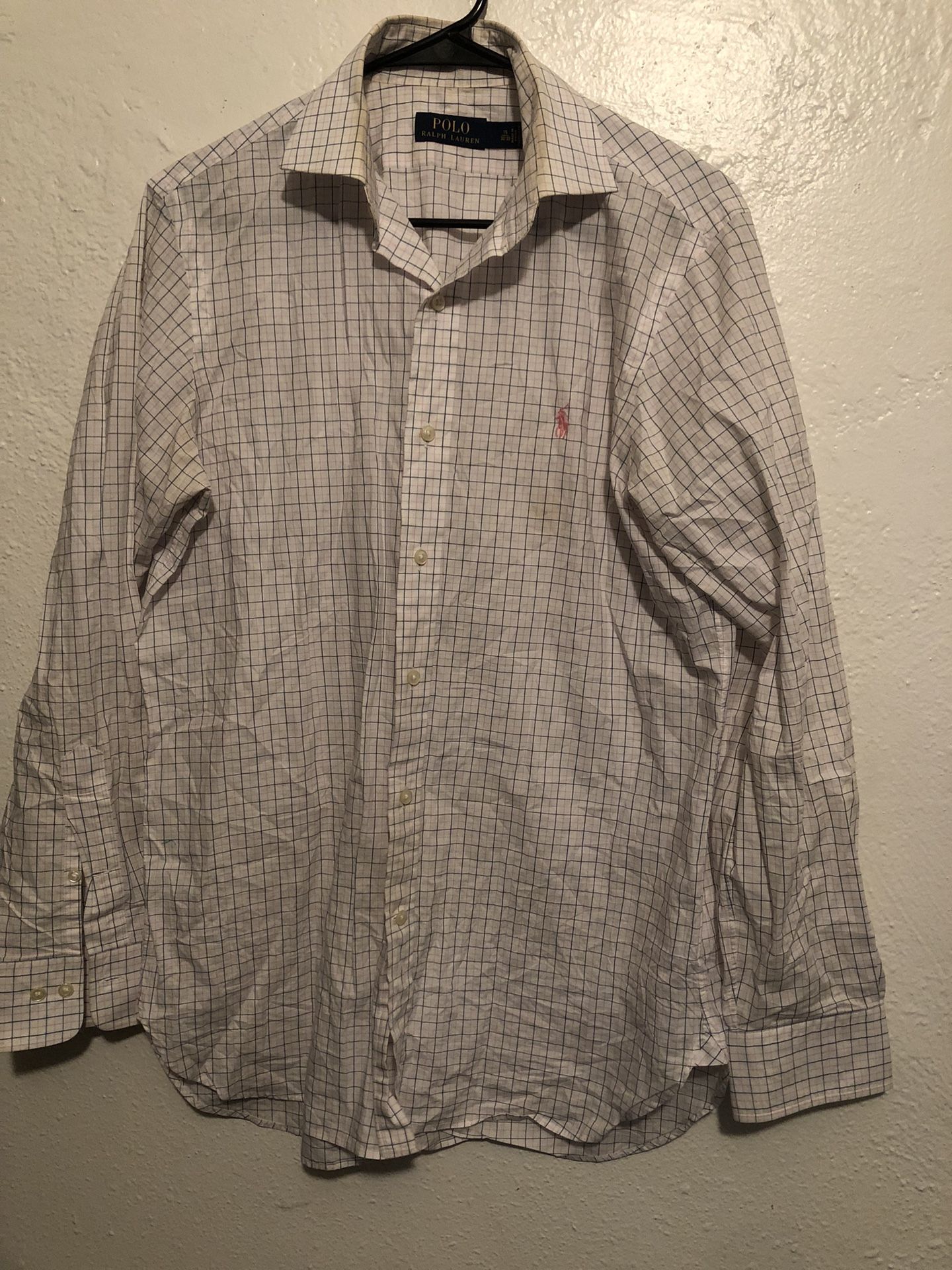 Polo Ralph Lauren Long Sleeve button down Shirt Mens Classic Fit S White Blue size 15 32/33 (Small)