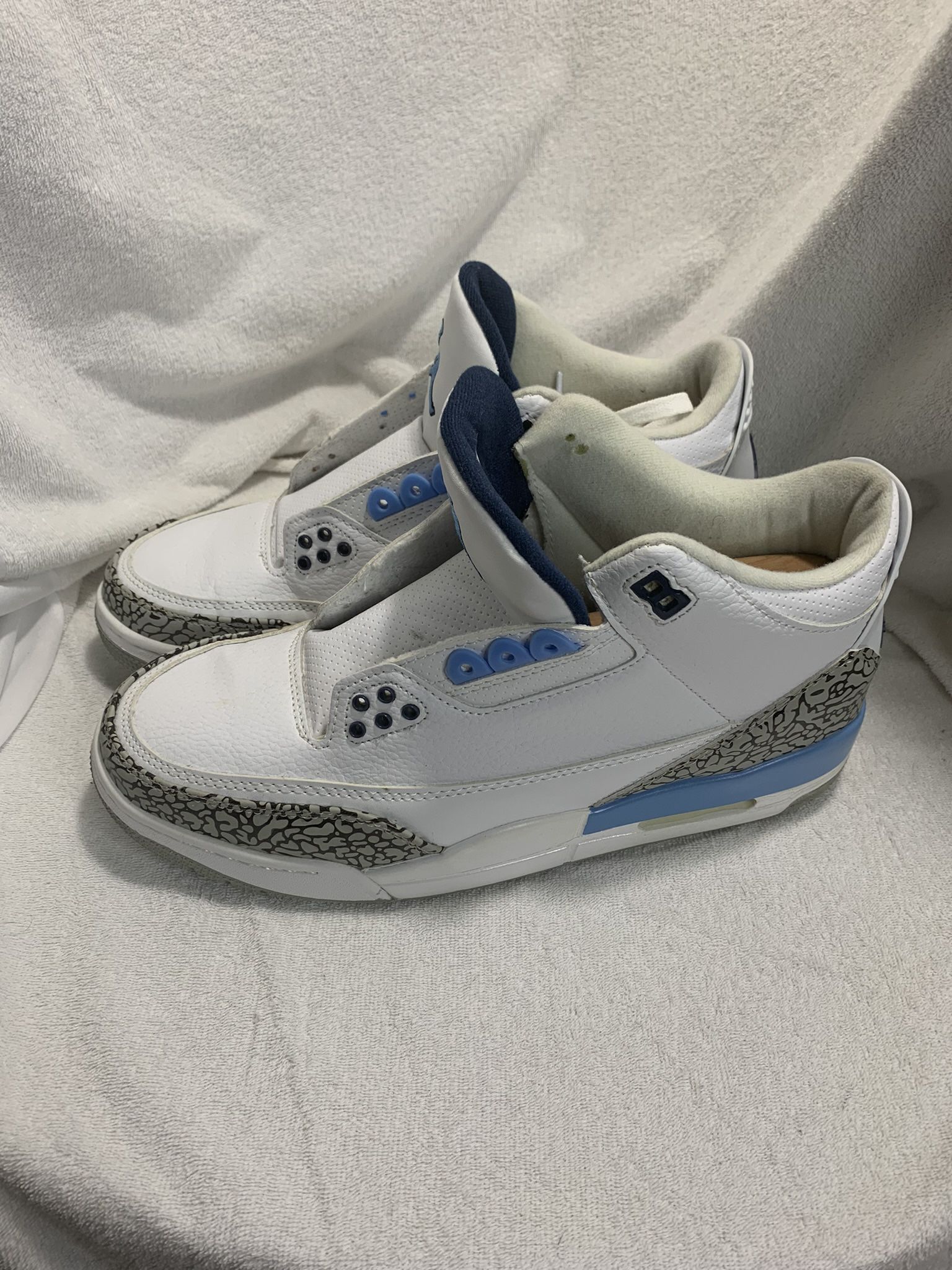 Introducing the Air Jordan 3 Retro UNC Edition shoes - a must-have for sneaker enthusiasts and fans of basketball history. These kicks are a tribute to the University of North Carolina, paying homage to the iconic team and their rich legacy. Step up your sneaker game with the Air Jordan 3 Retro UNC Edition, featuring a sleek design and classic colorway that showcases your love for basketball and style. The combination of premium leather and textile materials ensures durability and a luxurious feel. Experience unparalleled comfort with the Air-Sole units in the heel and forefoot, providing cushioning and impact protection with every step. The iconic elephant print detailing adds a touch of heritage, while the Jumpman logo on the tongue showcases your dedication to the Jordan brand. Whether you're hitting the court or hitting the streets, the Air Jordan 3 Retro UNC Edition shoes will turn heads and spark conversations. These sneakers offer a perfect blend of performance and style, making them a versatile option for any occasion. Join the ranks of sneaker enthusiasts and basketball aficionados who appreciate the timeless appeal of the Air Jordan 3 Retro UNC Edition shoes. Embrace the spirit of basketball greatness and add a touch of Carolina blue to your sneaker rotation. Don't miss out on the opportunity to own these iconic kicks. Grab your pair today and elevate your style with the Air Jordan 3 Retro UNC Edition shoes. Lace up, embrace the legacy, and let your feet make a statement wherever you go.