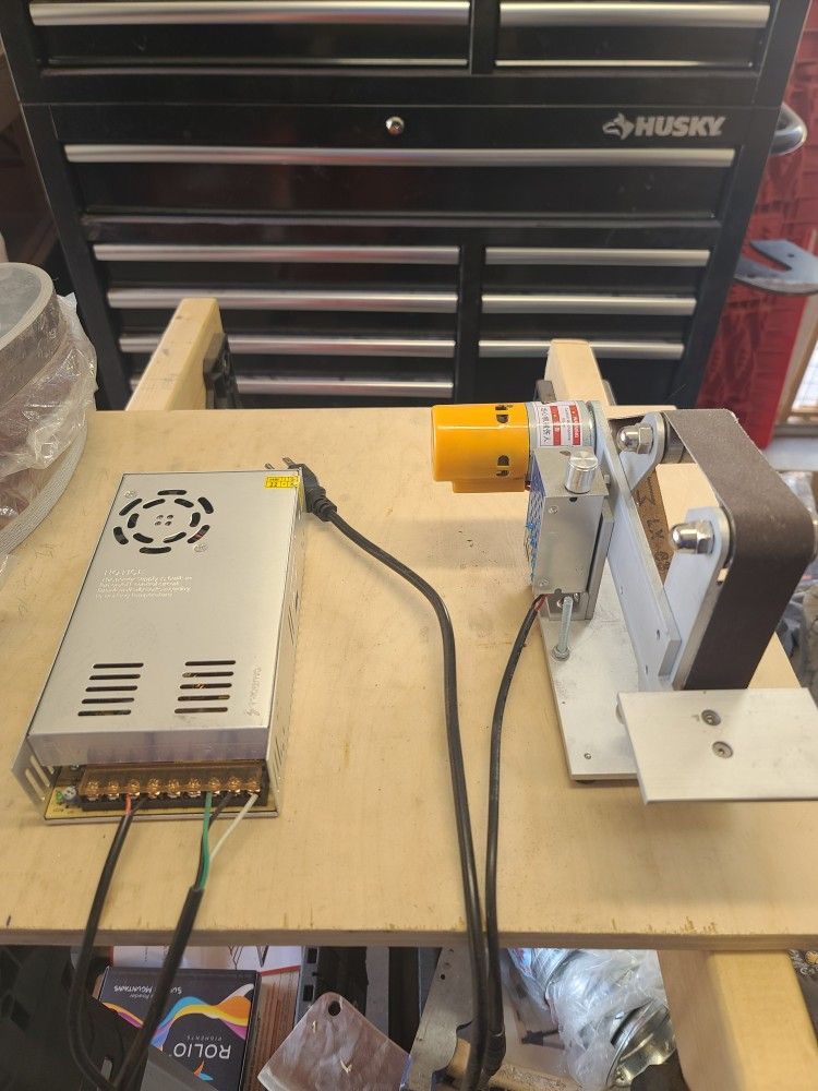 Used a handful of times. Great for sharpening or other small tasks. Comes with 80 assorted belts still new in package. Open to trades for smoker, bbq, or pressure washer.
