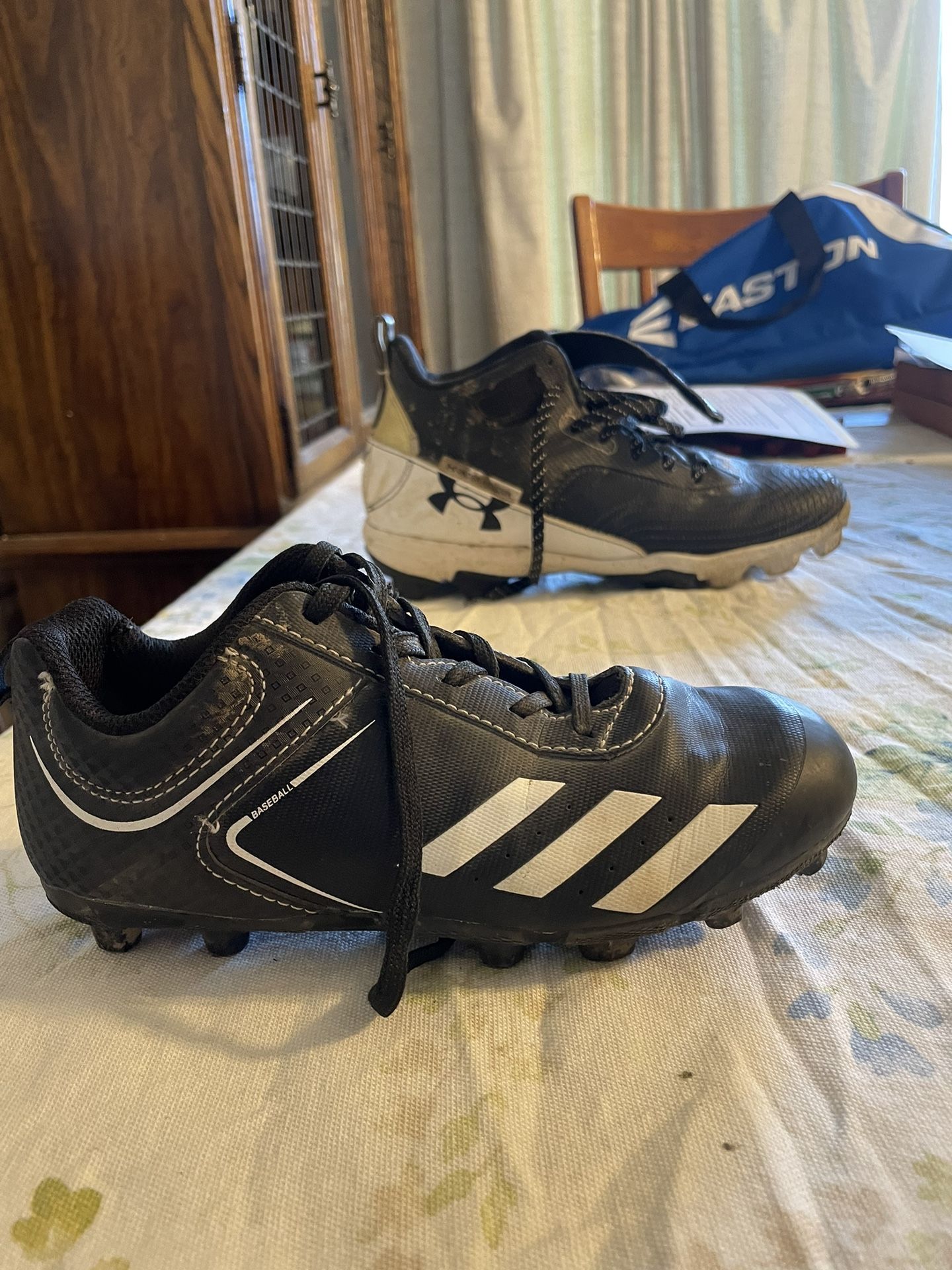 Baseball season is underway but maybe you need a new pair of cleats. I have a pair of 6 1/2 under armor cleats used one season and a pair of youth size 1 Adidas cleats used one season. $10 a piece