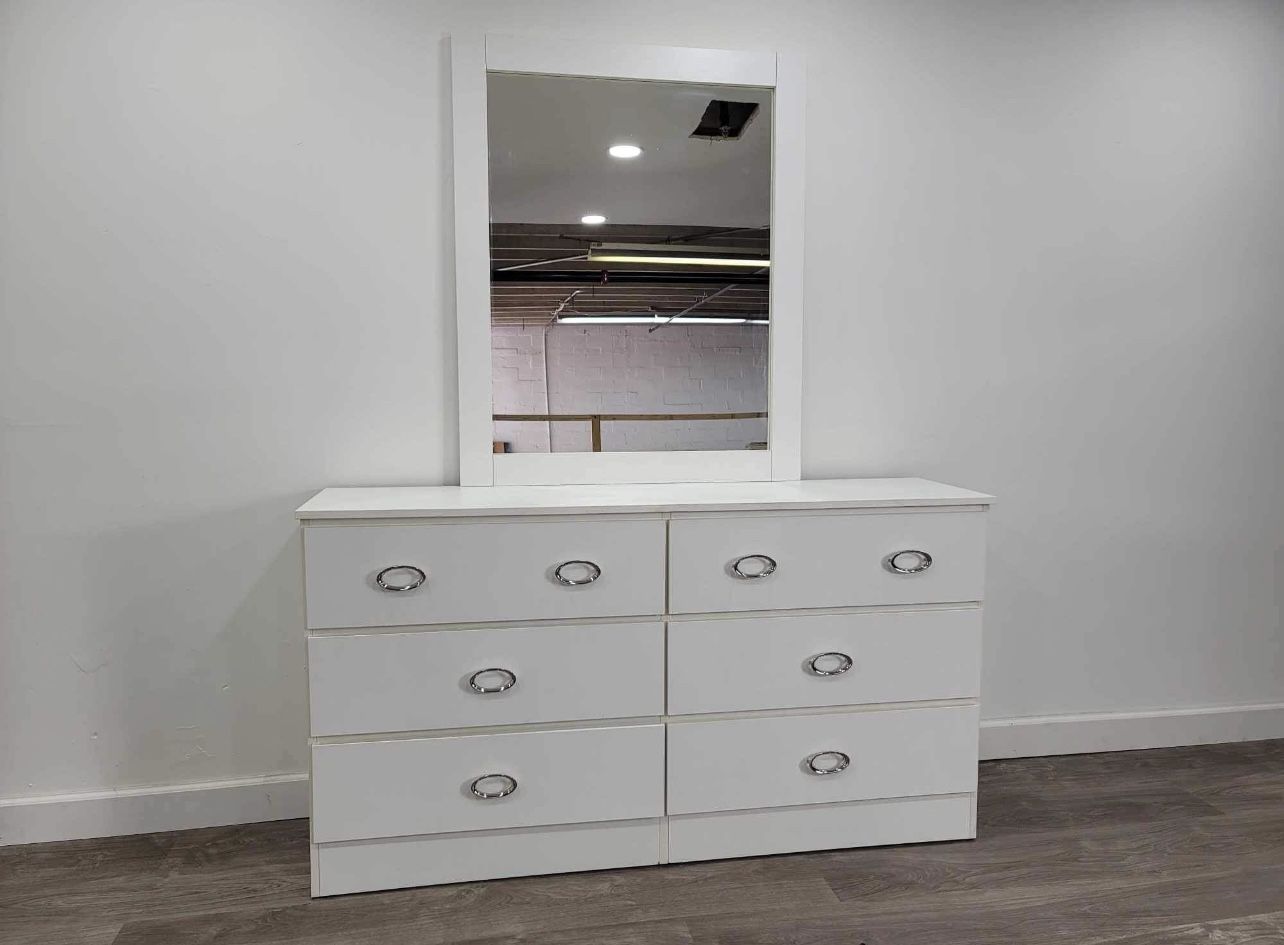 WHITE DRESSER WHIT MIRROR _ CÓMODA CON ESPEJO COLOR BLANCO