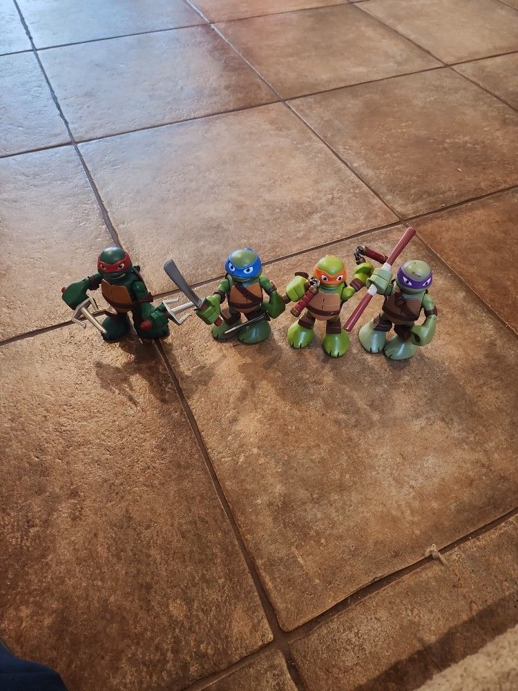 4 Teenage Mutant Ninja Turtles Action Figures 6.25 inches They have a lever on their back to make them move/fight. $30 for all