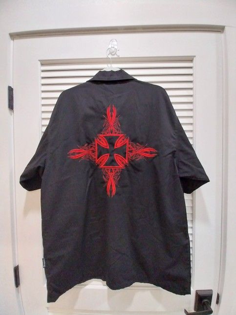 Selling a really cool DragonBall fly button up from the 90s. The item is still in like new condition with no damages or stains. Red iron cross emblem all stitched with stitched patterns on the sleeves. Also has some custom design buttons. Really cool shirt.