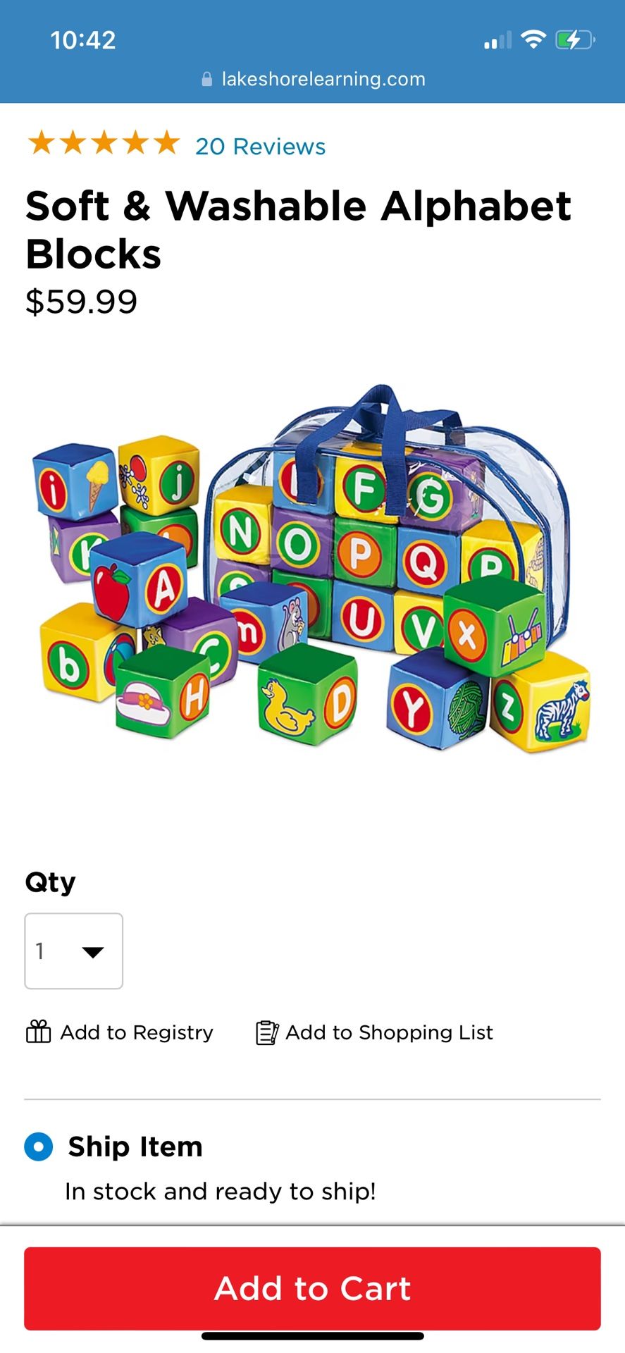 Lake Shore Soft Alphabet Blocks. They have all been cleaned in hypoallergenic laundry soap.