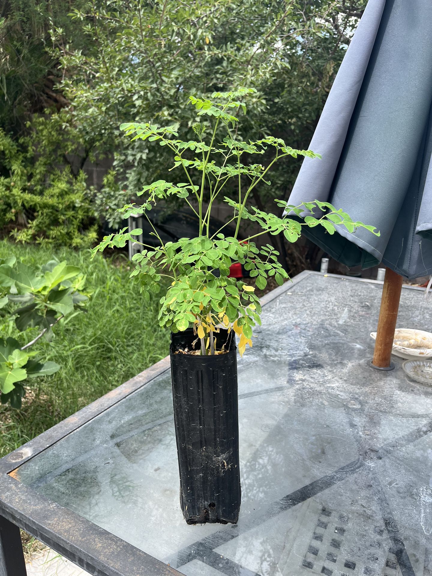 These moringa trees are planted from organic moringa seeds back in March 2023 and have two feet of roots already. Once planted in the ground they can grow 16 feet in a year and provide wonderful shade, excellent for teas and salads, also abundant easily harvested branches full of nutrients for even creating soils by composting them. They produce a lot of green healthy leaves for all sorts of purposes medicinally as well.