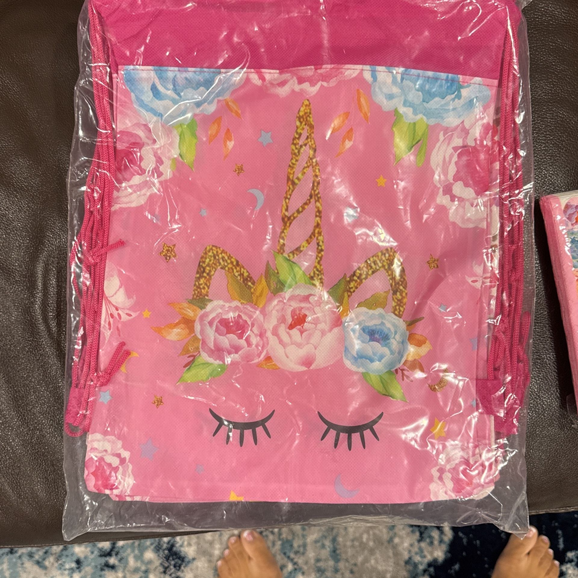 8 drawstring party bags, 25 napkins, 25 plates, 25 paper straws