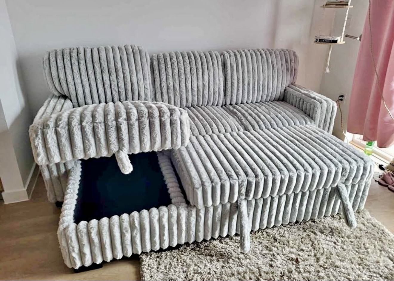 Hottest Sale!! Black Friday Prices Slashed Over 50% Off!! Soft Plush Jumbo Corduroy Fabric Sleeper Sectional Only $698!