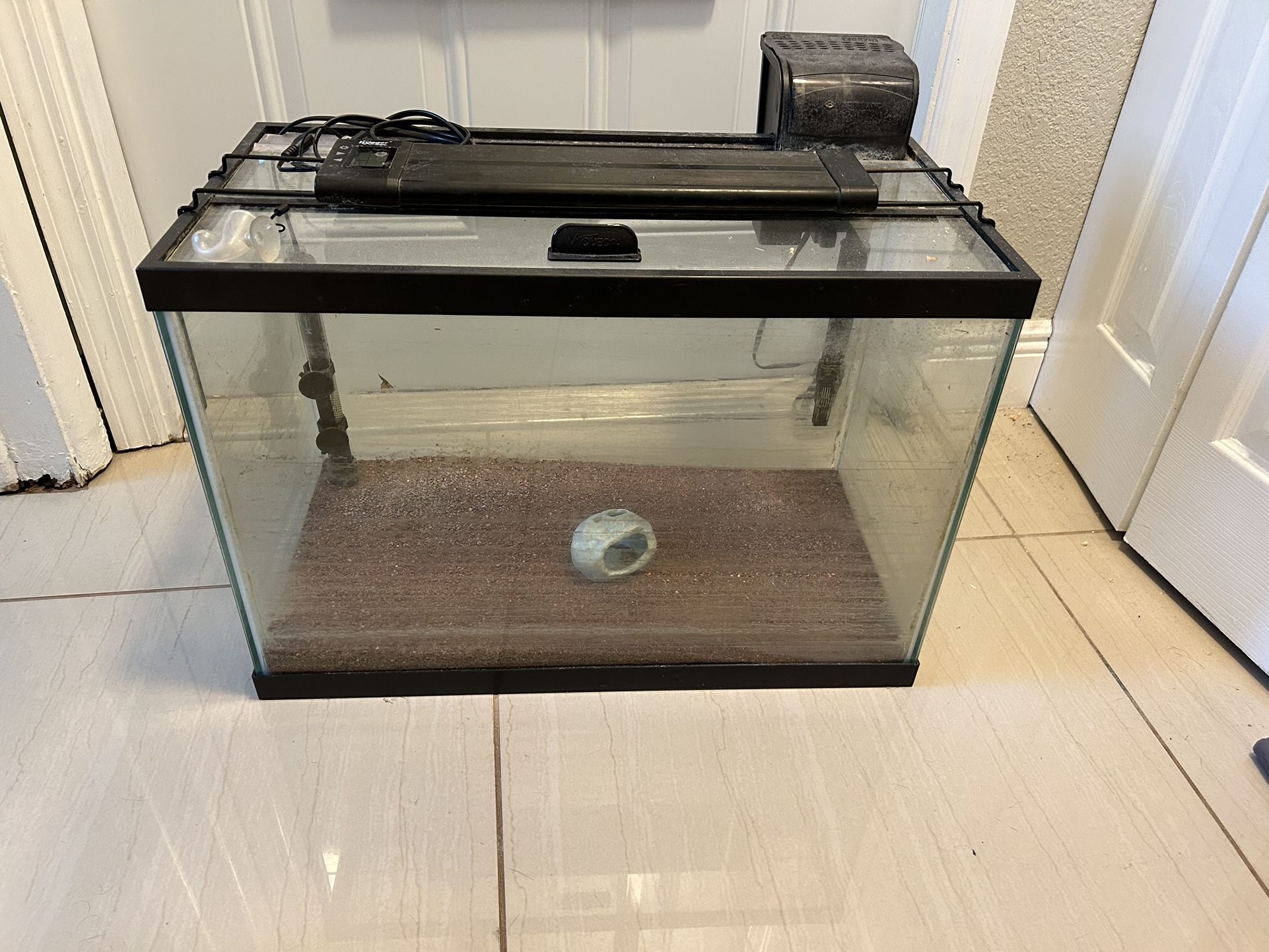 W: 24” x D: 12.25” x H:16.75” Comes with substrate, programmable light, water filter/pump, heater Used as freshwater setup $50 firm.