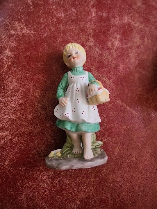 Vintage Porcelain Girl With Picnic Basket 6in Tall X 2.6 In Wide