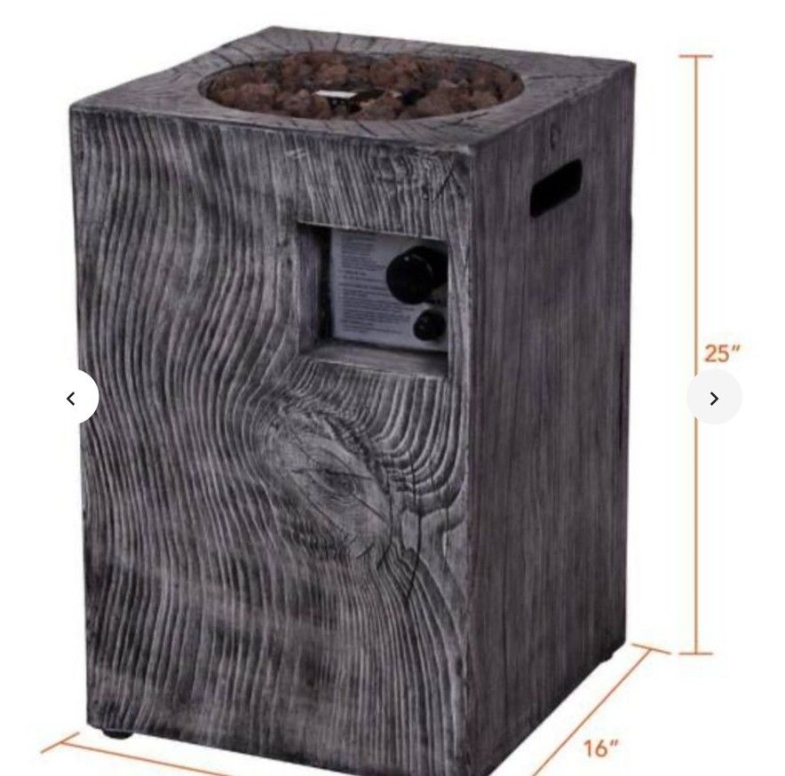 HeatMaxxOutdoor Propane Fire Pit, 30000 BTU Column Propane Fire Pit, Wood-Look Surface