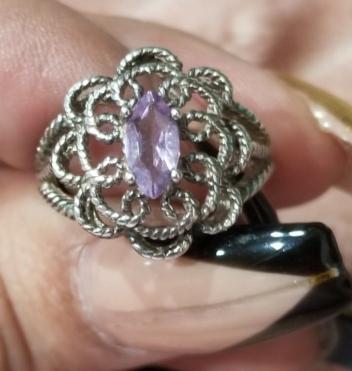 In used excellent condition. Purple amethyst sterling silver flower ring. Size 7. Must pick up, no holds and price is obo.