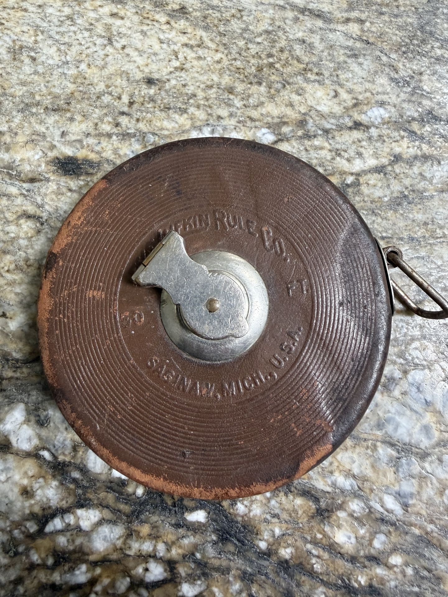 Vintage Lufkin Rule Company 50ft tape measure in very good condition. Made in Saginaw, Michigan this leather cased tape measure is a great item to add to your collection of vintage tools. In great working condition it is ready for a new home.