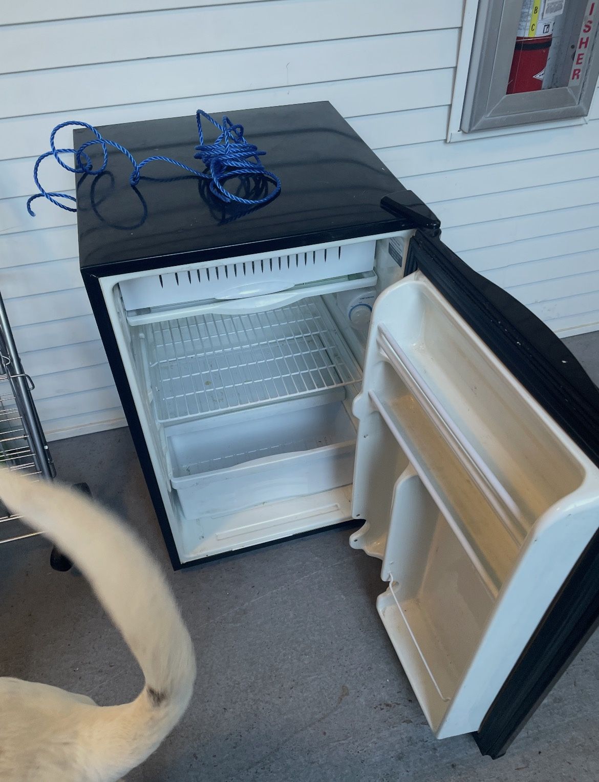 This mini fridge is sleek, clean and ready to hold your drinks and be decorated!