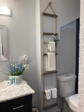 Rope ladder with wood rungs. Approx. 5β - 6β tall x 12β wide ladder (Made with recycled wood). Towels not included π Rungs Price 6 $25 5 $20 4 $15 3 $12 2 $10 *Custom orders welcome*