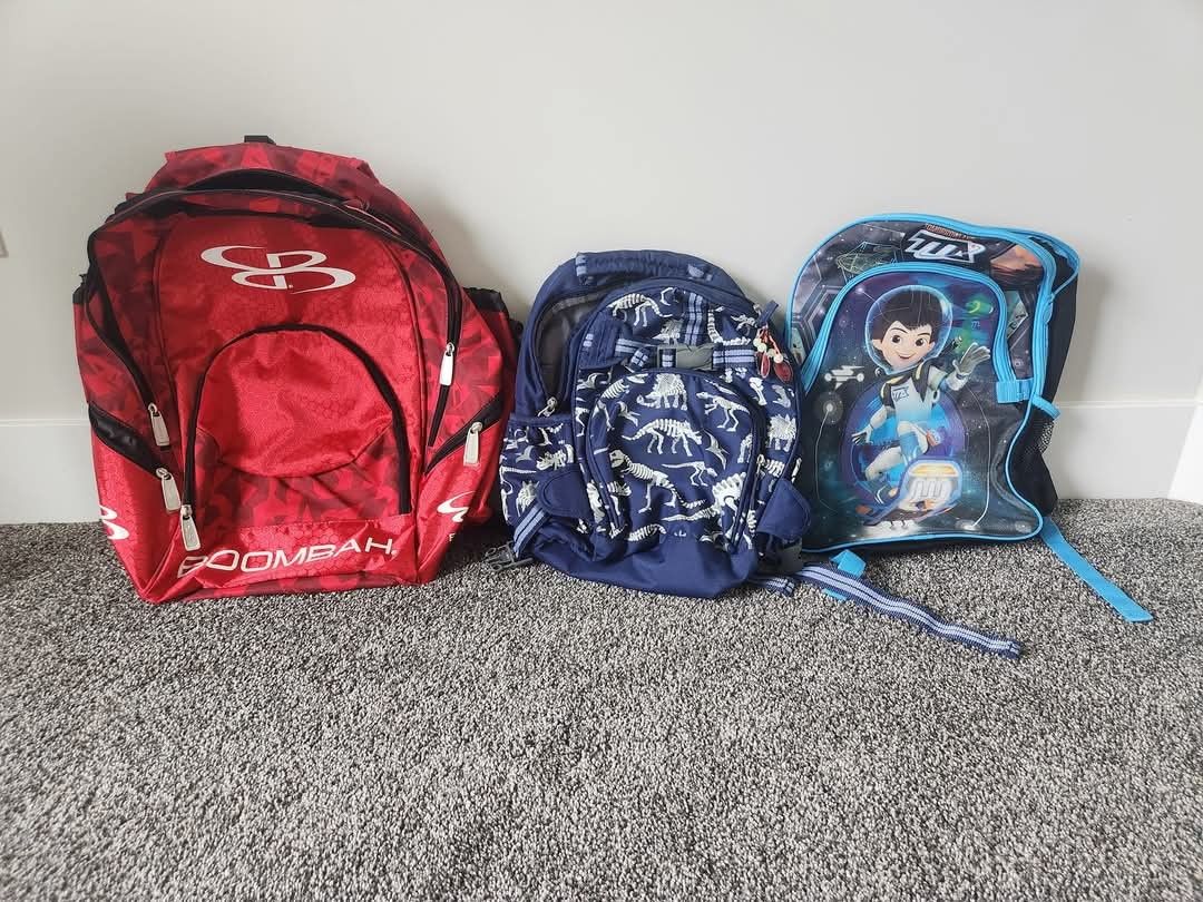New Backpacks Tomorrowland: $10 (brand new) Pottery Barn glow in the dark: $10 (little kid, like new) Boombah: $15 (brand new) Pickup in Manteno. No holds.