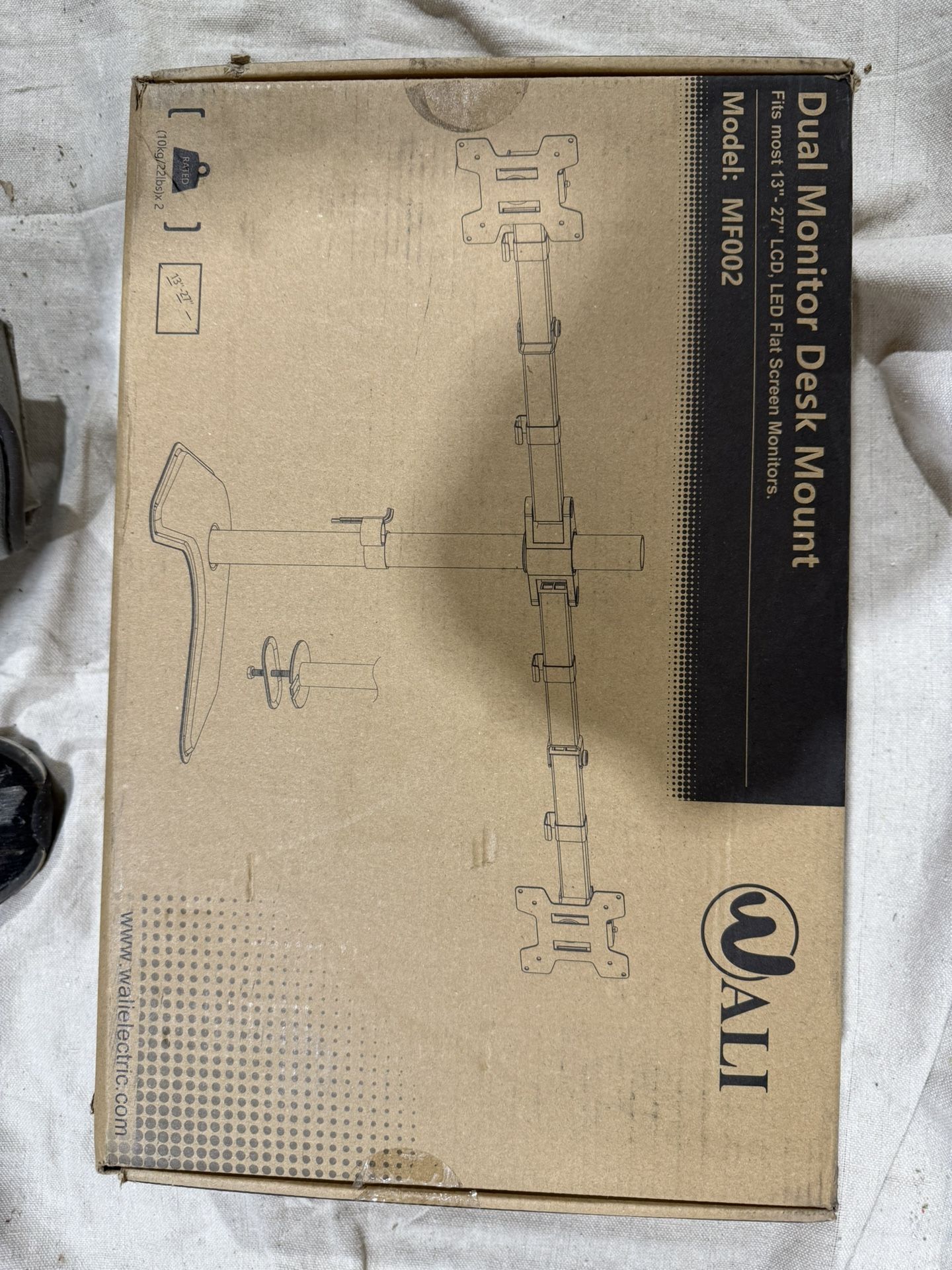 Unused, still in box. WALI Freestanding dual desk mount.