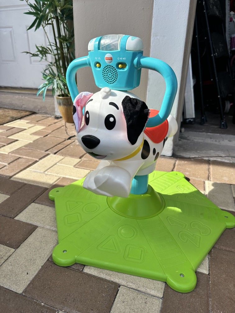 Fisher-Price Toddler Learning Toy, Bounce and Spin Puppy Stationary Ride-On Bouncer with Music & Lights for Infants Ages 1+ Years