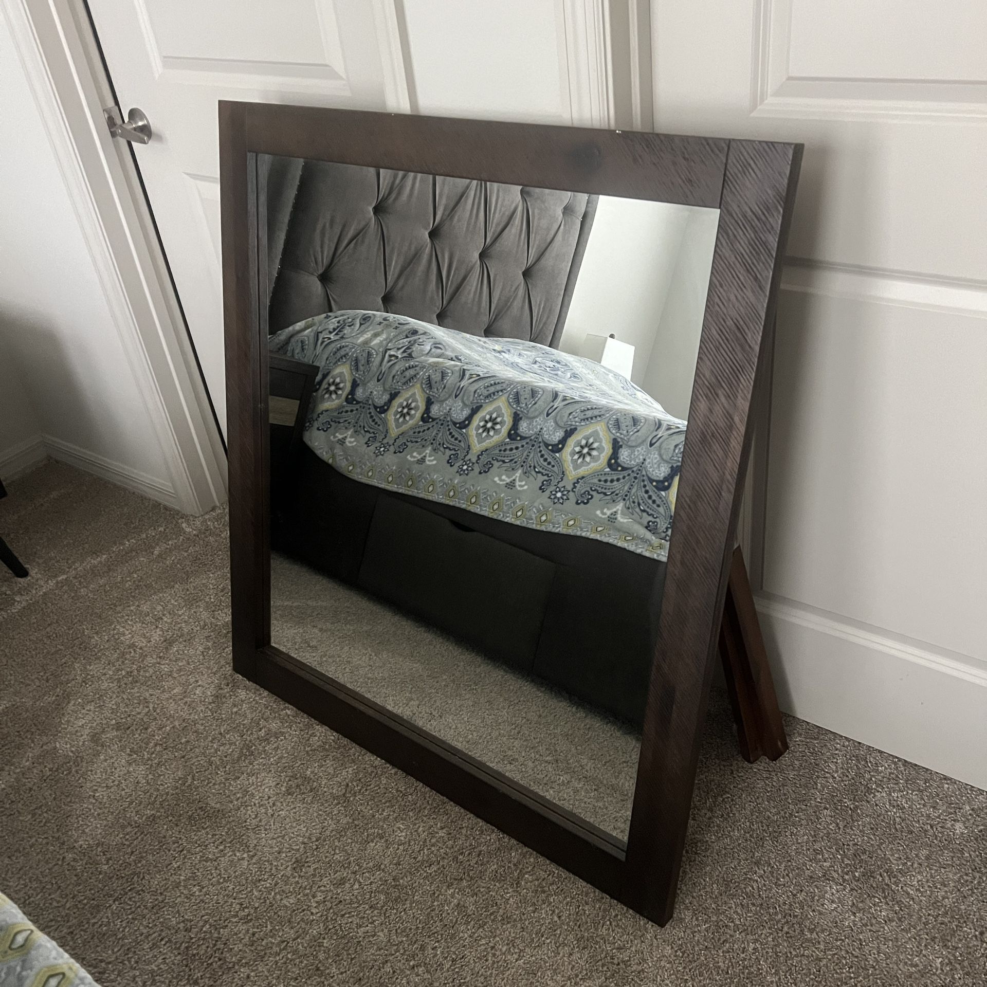 Wood Frame Dresser Mirror, comes with wooden supports to install 3’6” x 3’3”