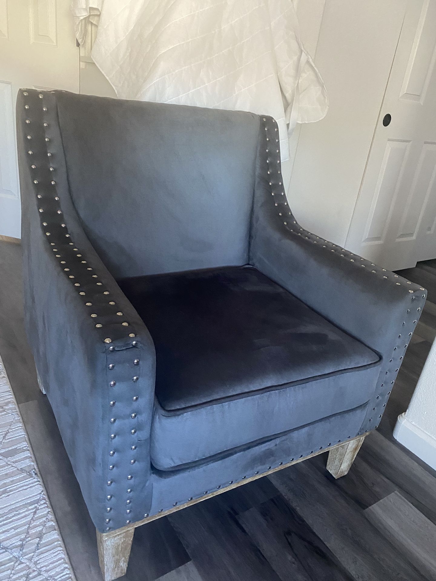 New living room, guest room or bedroom comfotable suede chair. New! Asking 250 or BEST OFFER!