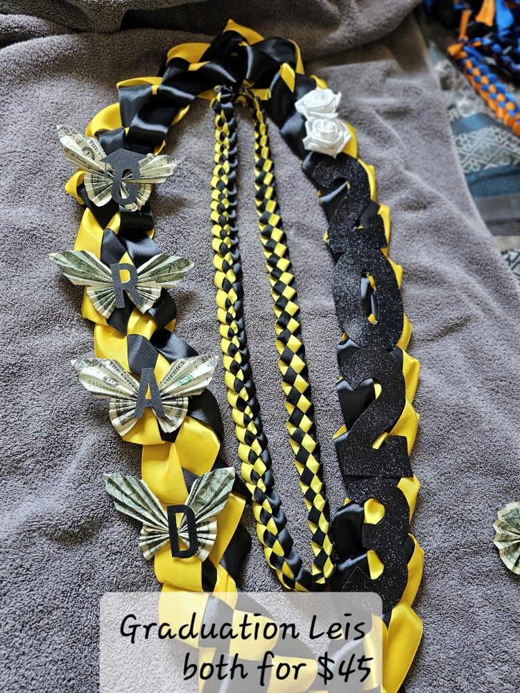 Different size graduation leis.. Pre-school/Kindergarten 6th Graders/8th Graders High School Any 2 colors of your preferences! (Money figures are separate from Lei cost)