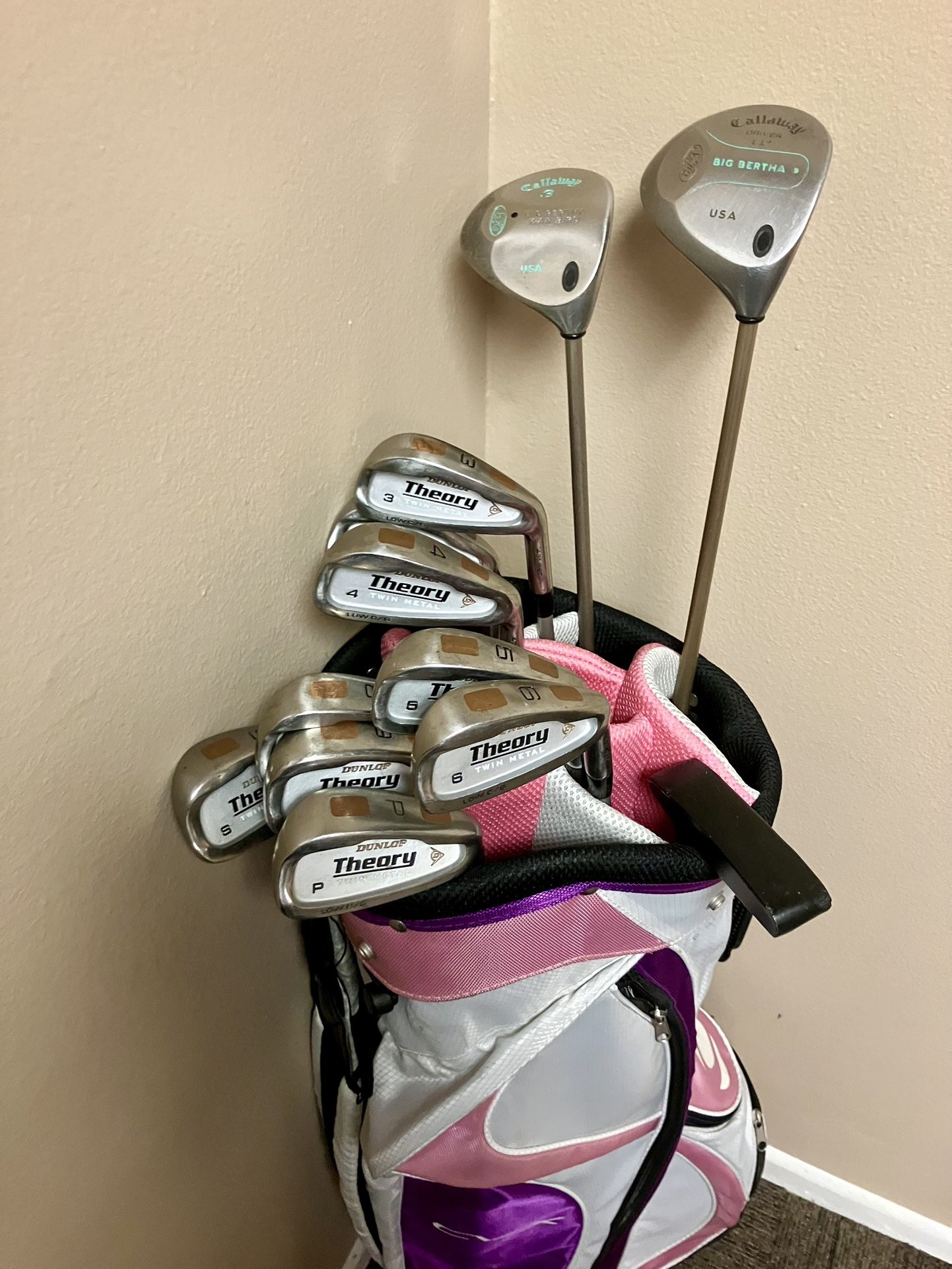 Comes with everything in pics. Ladies golf clubs set. Callaway drivers, like new Dunlop irons!Includes putter & Golf Bag! Let me know if you’re interested. Thanks for looking and make it a great day. TaylorMade Callaway Ping Mizuno Cleveland Titleist Nike Adams XXIO PXG Scotty Cameron cobra Srixon Honma driver fairway wood hybrids irons wedges chipper putter golf balls golf bag golf cart golf clubs set